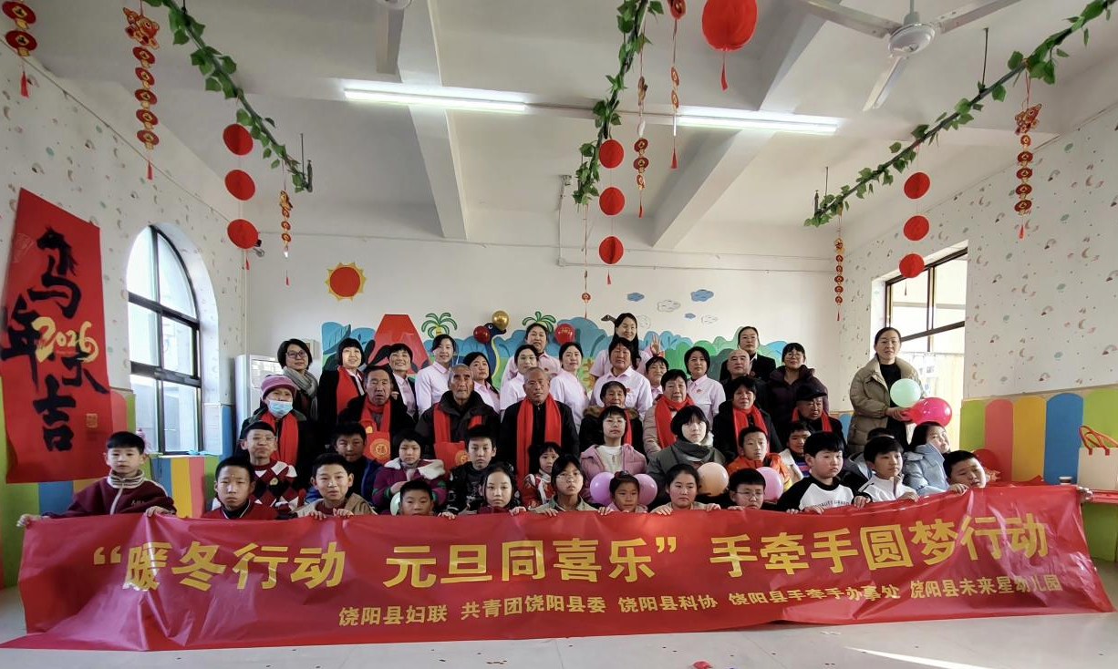 在元旦佳节来临之际,为传递社会温暖,播撒科学梦想,饶阳县科协携手饶阳县妇联、饶阳县团委以及社会各界爱心力量,于2026年1月1日,在饶阳县未来星幼儿园成功举办了“暖冬行动·元旦同喜乐”孤困儿童公益圆梦活动。活动旨在为孤困儿童群体送去节日的问候与真挚的关怀,让他们在欢乐祥和的氛围中感受社会大家庭的温暖,激发对科学和未来的美好向往。