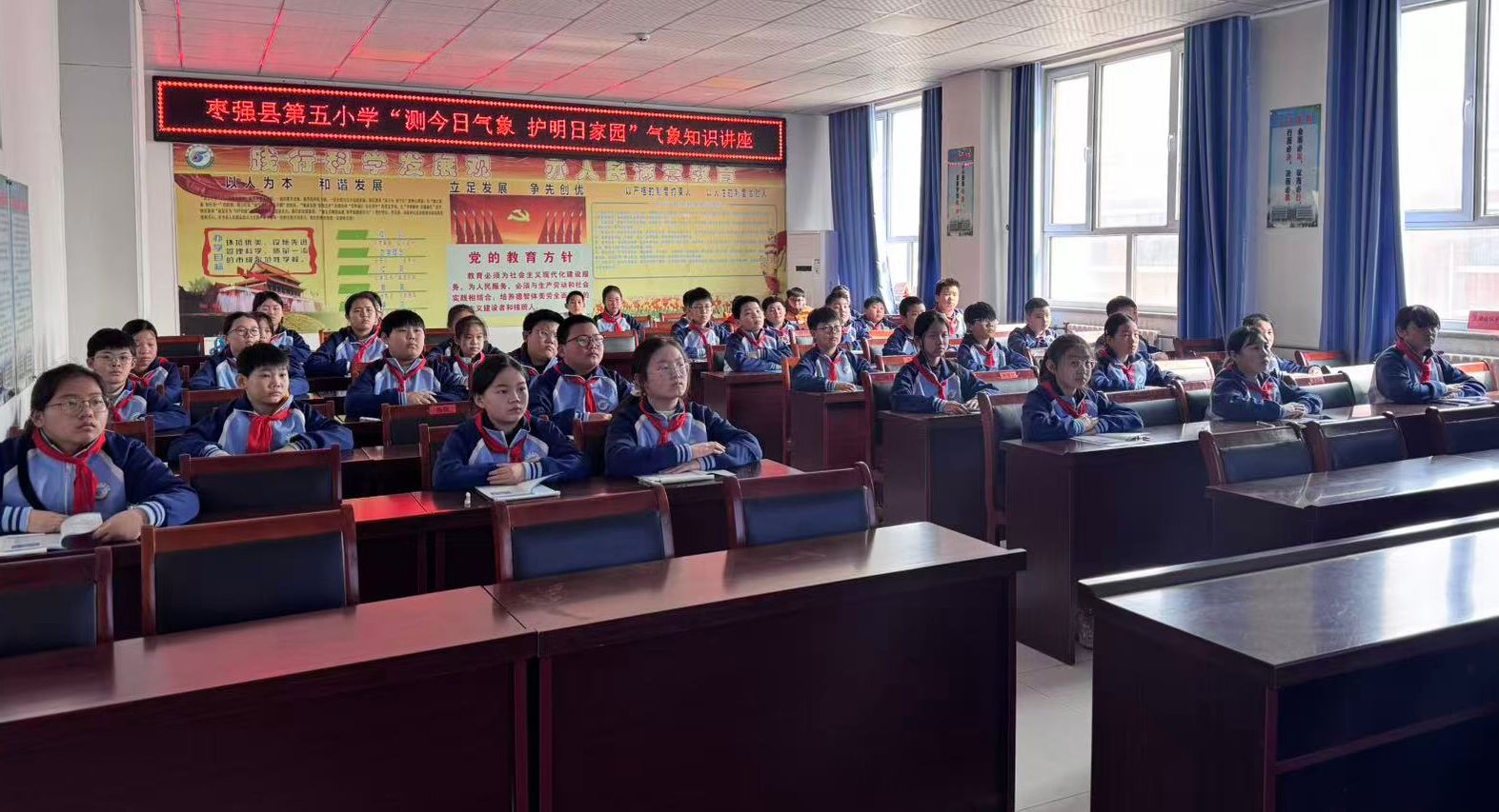 为迎接3月23日世界气象日,近日,枣强县科协联合枣强县气象局、枣强县第五小学共同开展以“测今日气象 护明日家园”为主题的气象知识进校园活动,让学生们“零距离”体验气象奥秘。