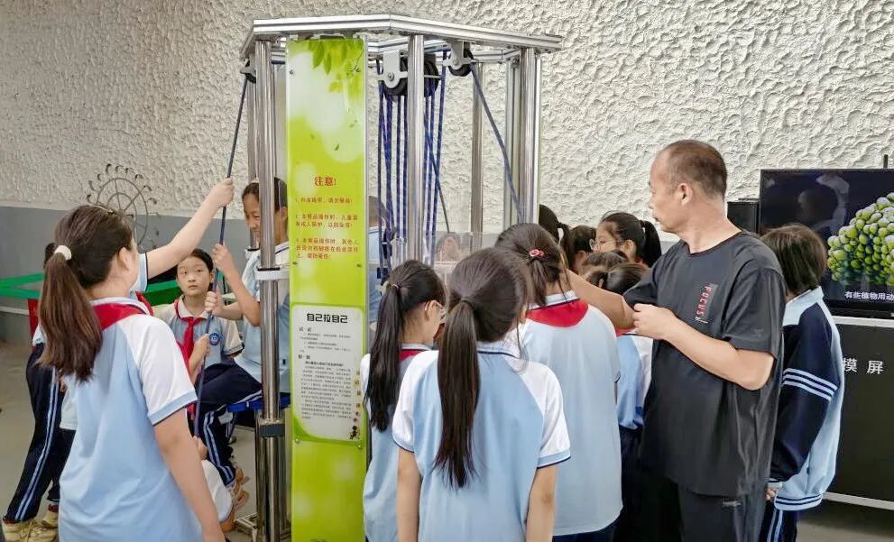 随后,200余名师生走进科技馆参观,开启了一场“沉浸式”科技探索之旅。“体验科学”主题展区一亮相,就成了孩子们眼中的“科学宝藏库”。声光体验区里,声音与光影共舞,每一次声波的震动都化作可见的斑斓;电磁探秘区中,看不见的磁力成了“指挥家”,小物件乖乖听话的模样藏着电磁的奥秘;运动旋律区里,小球滚动的轨迹、杠杆起落的节奏,都在诉说着力学的规律……