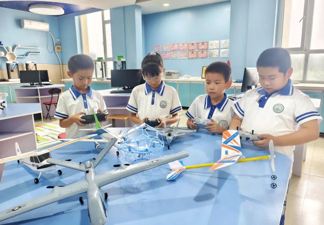 趣味无限的创客室是孩子们的“科技小课堂”。小组协作调试无人机,互相帮忙组装航模,每一次交流都是思维的碰撞,每一次配合都让科技梦想离天空更近一点。