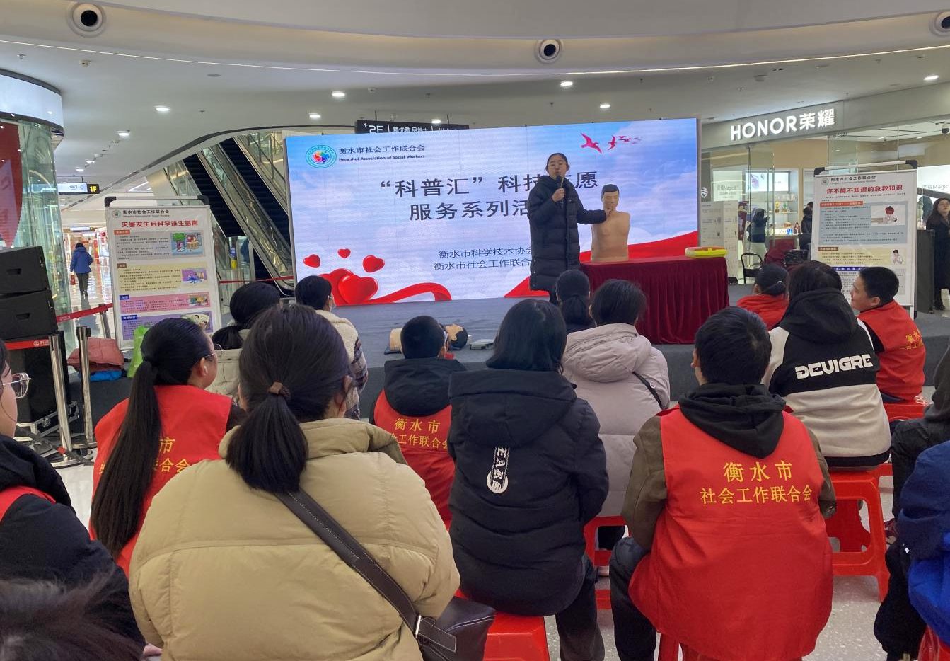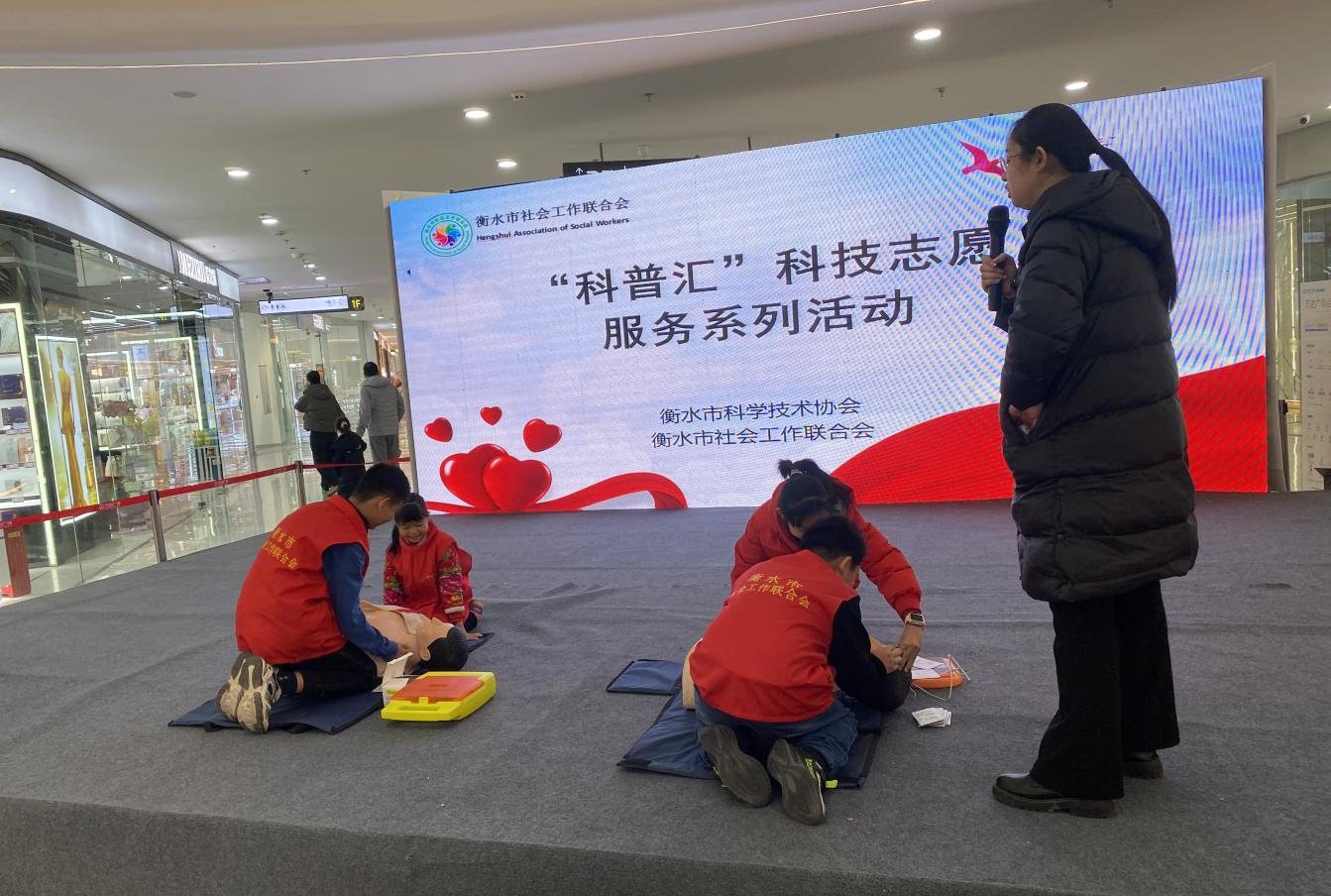 为深入贯彻落实《全面科学素质行动计划纲要(2021-2035年)》,扎实推进科技志愿服务走深走实,切实提升群众应急自救互救能力,普及实用急救科学知识。近日,衡水市社会工作联合会走进衡水市万达广场,开展“科普汇”科技志愿服务系列活动,让科学急救理念融入日常生活。