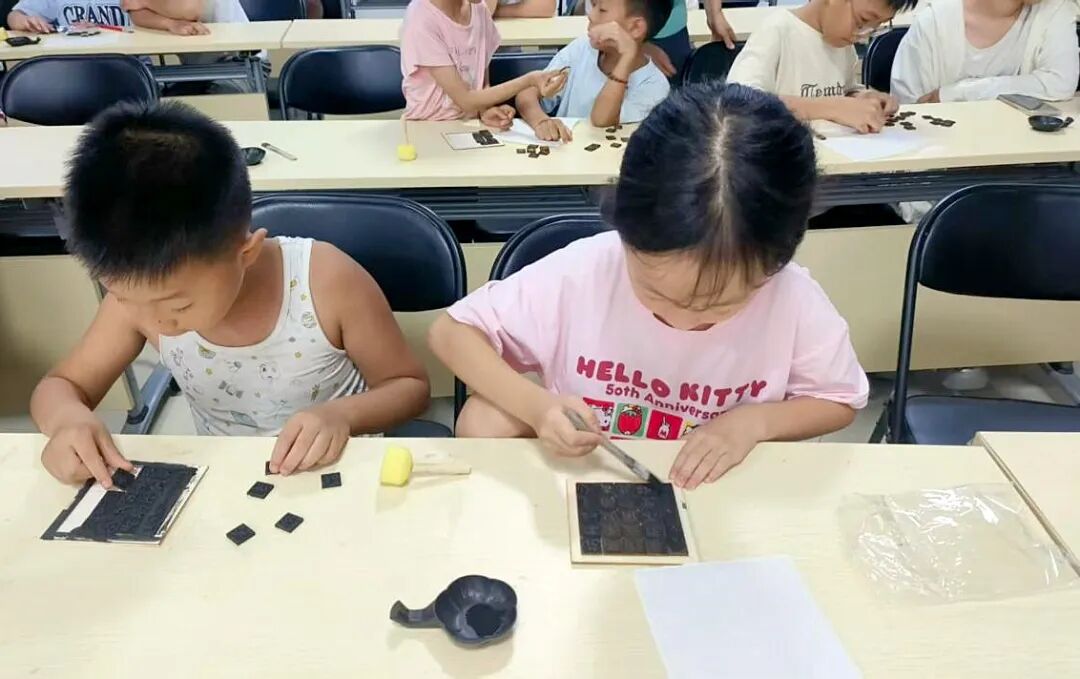 学生分组进行活字印刷的实践操作。在辅导老师的指导下,每组挑选活字字模进行排版,然后使用特制的油墨刷、宣纸等工具,依次完成刷墨、覆纸、按压等印刷工序,亲手制作出属于自己的活字印刷作品。过程中,辅导老师在各小组间巡回指导,及时解答疑问,帮助学生顺利完成作品。
