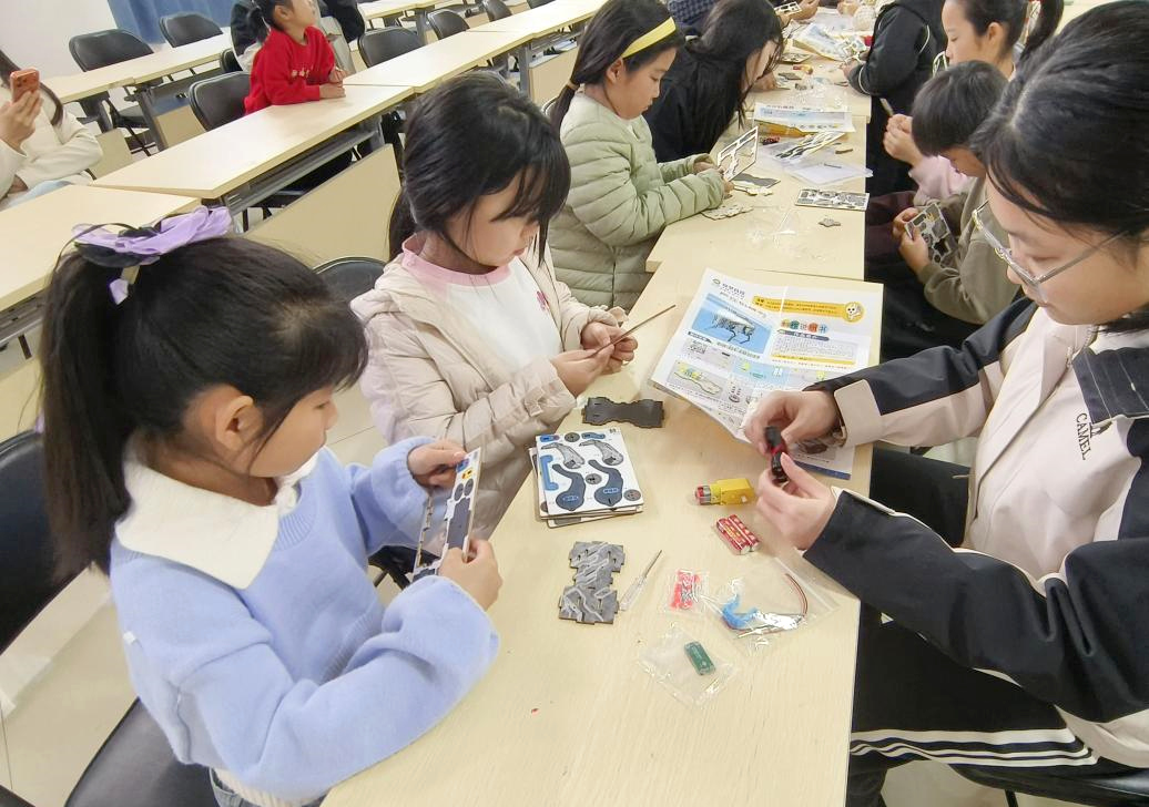 进入实操环节,参与者领取拼装套件后,在老师的引导下,对照拼装图纸,逐一识别零件、拆分组件、精准拼接。过程中,大家全神贯注、耐心细致,有的认真比对零件型号,有的小心翼翼固定螺丝,有的互相交流拼装技巧。面对零件细小、接口对位困难、电路连接复杂等问题,同学们没有轻言放弃,在老师的耐心指导和同伴的互助协作下,逐步攻克难题。低年龄段参与者在家长的陪同下,锻炼了手部精细动作和专注力;高年龄段参与者则自主探索拼装逻辑,尝试解决拼装过程中的突发问题,有效提升了动手实践能力和问题解决能力。整个实操环节,现场秩序井然,大家沉浸在拼装的乐趣中,时不时传来阵阵欢呼。