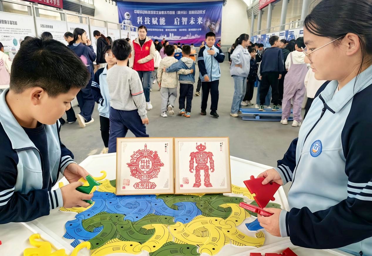 冀州区科协创新推出非遗剪纸主题科普书签,紧扣“科技赋能·启智未来”的活动主题,将非物质文化遗产与现代科普深度融合,为本次巡展注入了浓厚的文化气息与创新活力,成为青少年科普教育的全新载体,深受参观师生喜爱。