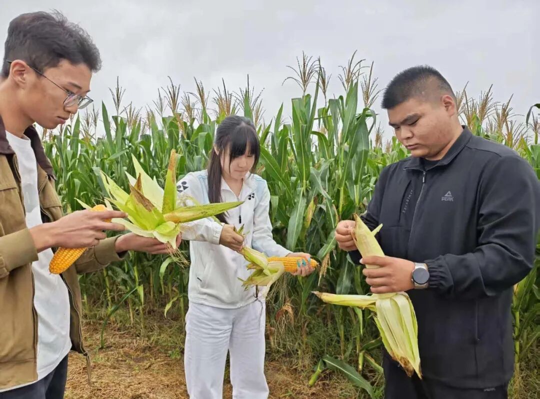 9月23日,现代农牧系党总支师生代表赴河北省农林科学院旱作农业研究所深州试验站,开展丰收节专项科普实践。活动分为“丰收专题科普”和“手工采摘体验”两大环节。旱作所科研骨干系统讲解了玉米育种技术、节水栽培及病虫害绿色防控等前沿科技,深入剖析品种选育与农业可持续发展的关联。师生随后走进田间实验基地,在科技志愿者指导下现场参与玉米采摘,实践农业操作流程,直观感受科技对作物产量与品质的提升作用。