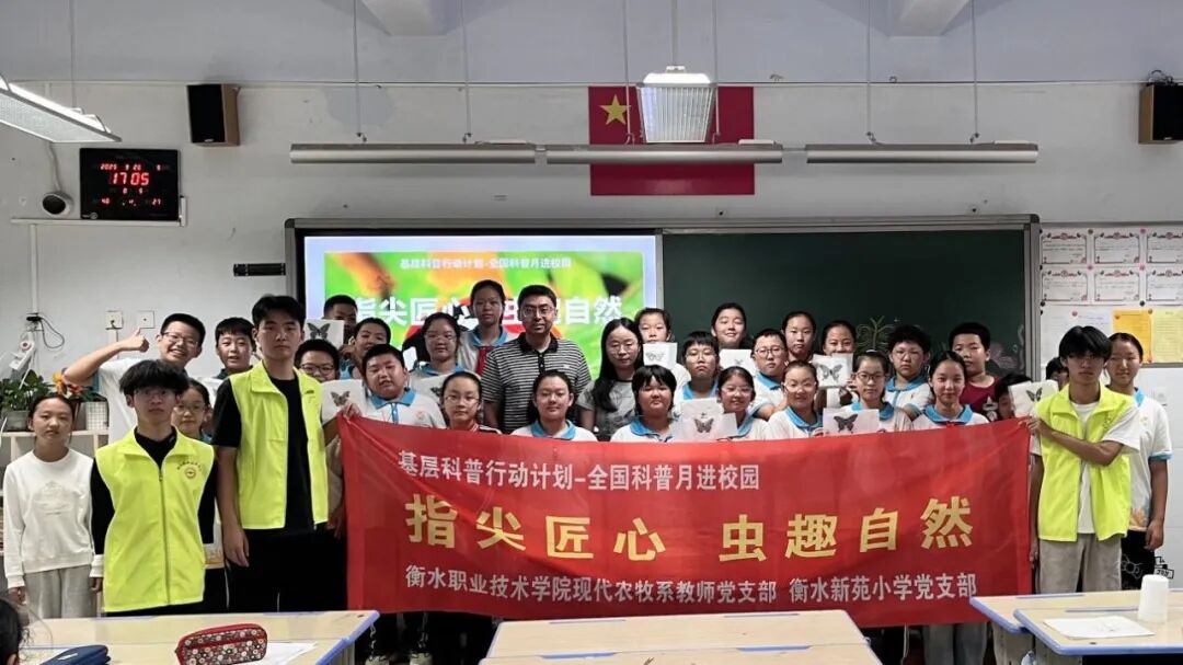 衡水职业技术学院科协以“全国科普月”为契机,组织现代农牧系教师党支部在衡水市新苑小学开展了主题为“指尖匠心 虫趣自然”的昆虫科普活动。活动通过知识讲解、科学观察、动手实践等多维形式,激发小学生对自然科学的兴趣,传递生态文明理念,是“党建+科普”融合实践的生动体现。